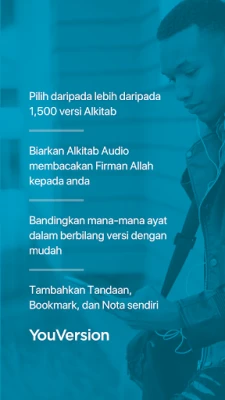 Terokai kekayaan Firman Tuhan melalui ribuan rancangan bacaan, renungan harian, dan koleksi video yang mencerahkan dari The Bible Project dan Lumo Project. App Alkitab memupuk pertumbuhan rohani anda dengan membolehkan interaksi yang jujur tentang iman, di mana anda boleh berkongsi penemuan, bertanya, dan mendalami kebenaran Alkitab bersama sahabat. Cipta imej ayat yang menawan hati, tambahkan ayat pada gambar anda, dan sebarkan inspirasi melalui media sosial atau mesej. Dengan lebih daripada 2,000 terjemahan dalam lebih 1,300 bahasa, termasuk BM, TB, Alkitab Versi Borneo (AVB), BMDC, dan BIMK, serta pilihan Alkitab audio untuk terjemahan terpilih, YouVersion memastikan Firman Tuhan mudah diakses oleh semua.