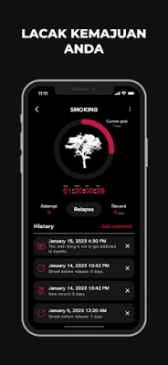 Inti kepada kekuatan Berhenti Kecanduan terletak pada sistem penjejakan dan analisisnya yang komprehensif. Anda boleh mencatat setiap perkembangan, termasuk fikiran, perasaan, pencetus penting, dan bahkan kemunduran, membolehkan anda membina rekod terperinci tentang perjalanan anda. Ciri pemasa undur yang intuitif memaparkan dengan tepat berapa lama anda telah berjaya menjauhi tabiat tersebut, memberikan motivasi berterusan dalam hari, jam, minit, dan saat. Dengan meninjau log peribadi dan memahami corak tingkah laku anda, Berhenti Kecanduan melengkapkan anda dengan wawasan yang diperlukan untuk menghadapi dan mengatasi cabaran.