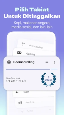 Pernahkah anda berazam untuk meninggalkan tabiat buruk atau mengawal sesuatu ketagihan, tetapi merasa sukar untuk kekal konsisten? Kini tiba masanya untuk mengambil langkah pertama ke arah kehidupan yang lebih positif dan terkawal. Memperkenalkan Freedom, sebuah aplikasi pengesan tabiat yang intuitif dan percuma, direka khas untuk menemani perjalanan anda menuju kebebasan diri. Sama ada anda ingin menghentikan tabiat merokok, mengurangkan masa skrin yang berlebihan, atau memulakan detoks digital, Freedom adalah rakan kongsi setia anda dalam membina kesedaran dan mengekalkan kemajuan setiap hari tanpa tekanan.