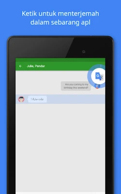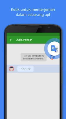Merentasi sempadan linguistik tidak pernah semudah ini. Google Terjemah hadir sebagai jambatan komunikasi muktamad anda, mengubah cara anda berinteraksi dengan dunia dalam lebih daripada seratus bahasa. Dengan ciri Ketik untuk Terjemah yang intuitif, anda hanya perlu menyalin sebarang teks dari mana-mana aplikasi, dan ikon Google Terjemah akan muncul serta-merta, sedia untuk memberikan pemahaman dalam sekelip mata. Alami kebebasan untuk memahami dan difahami, tanpa mengira halangan bahasa yang anda temui.