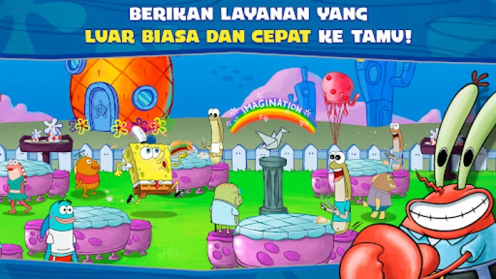 Rasai keseronokan pengurusan masa yang pantas di mana setiap saat penting. Jangan sesekali terlepas acara masakan yang mengujakan, penggunaan penggalak strategik, dan ganjaran berharga yang direka untuk mempercepatkan kemajuan anda. Dengan panggangan yang sentiasa menyala, hidangkan hidangan cepat saji yang memukau kepada pelakon watak-watak kegemaran seperti Patrick Star, Sandy Cheeks, Squidward, dan ramai lagi. Mulakan kerjaya anda sebagai chef goreng junior yang bersemangat, asah kemahiran anda melalui setiap peringkat, dan buktikan kehebatan anda sehingga menjadi chef restoran terulung di kafe santai SpongeBob. Kepuasan pelanggan adalah kunci, dan resipi terbaik anda akan menjamin bonus lumayan!